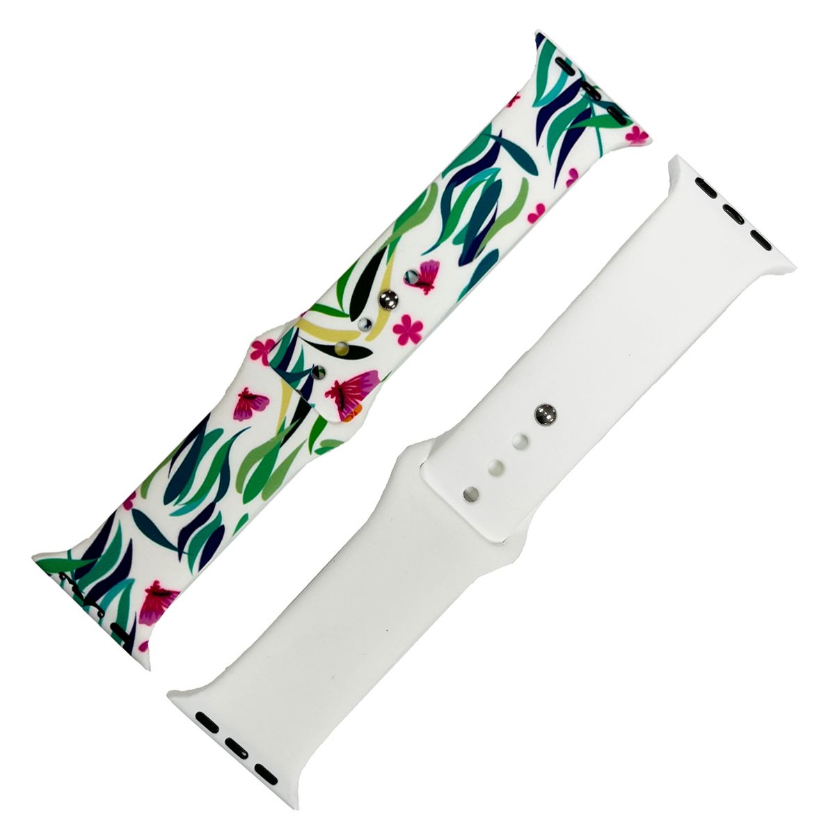 Flowers and Cats 2 Pack Printed and Solid Apple Watch Band 38MM