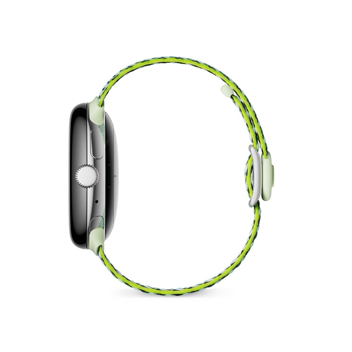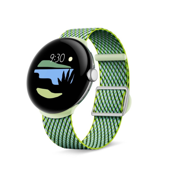 (1)Google Pixel Watch sold separately. Yarns are made with 100% recycled plastic, excluding dyes and additives. Recycled yarn is at least 90% of textile based on weight.