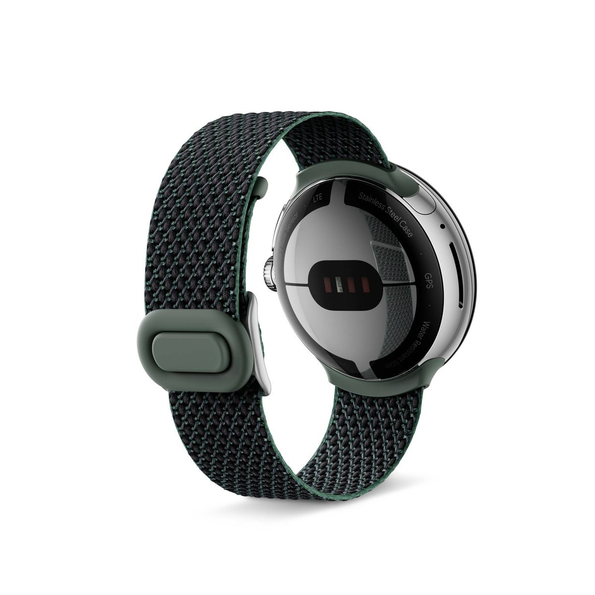 (1)Google Pixel Watch sold separately. Yarns are made with 100% recycled plastic, excluding dyes and additives. Recycled yarn is at least 90% of textile based on weight.