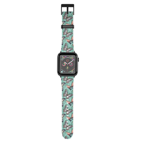 Heather Dutton Mariposa Boho Butterflies Aqua 42mm/44mm Black Apple Watch Band - Society6