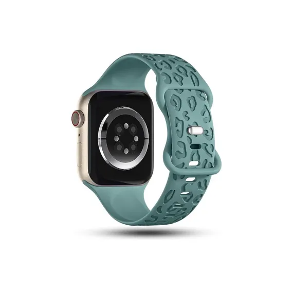 HTUTWOO Apple Watch Band 38mm 40mm 41mm, Leopard Pattern Soft Silicone Strap Compatible with iWatch Series 10 9 8 7 6 5 4 3 2 1 Ultra,Green