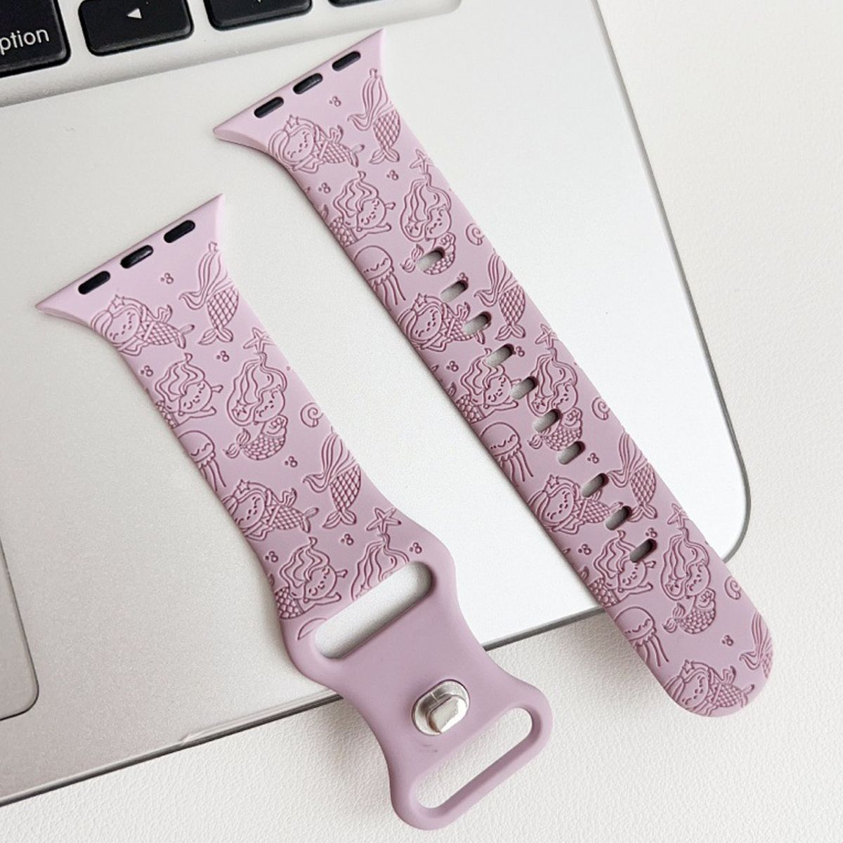 This Apple Watch Band combines playful style with everyday comfort, featuring a vibrant mermaid pattern and soft silicone material—designed for watch cases and fully compatible with Apple Watch Series 10, 9, 8, 7, 6, 5, 4, 3, 2, 1, SE, and Ultra models. Crafted from high-grade, skin-friendly silicone, the strap delivers a lightweight, flexible fit that adapts to wrist shapes, making it ideal for all-day wear—whether you’re at work, hitting the gym, or enjoying casual outings.