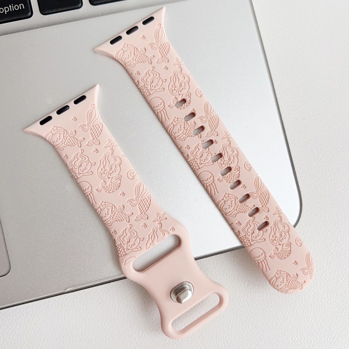 This Apple Watch Band combines playful style with everyday comfort, featuring a vibrant mermaid pattern and soft silicone material—designed for watch cases and fully compatible with Apple Watch Series 10, 9, 8, 7, 6, 5, 4, 3, 2, 1, SE, and Ultra models. Crafted from high-grade, skin-friendly silicone, the strap delivers a lightweight, flexible fit that adapts to wrist shapes, making it ideal for all-day wear—whether you’re at work, hitting the gym, or enjoying casual outings.
