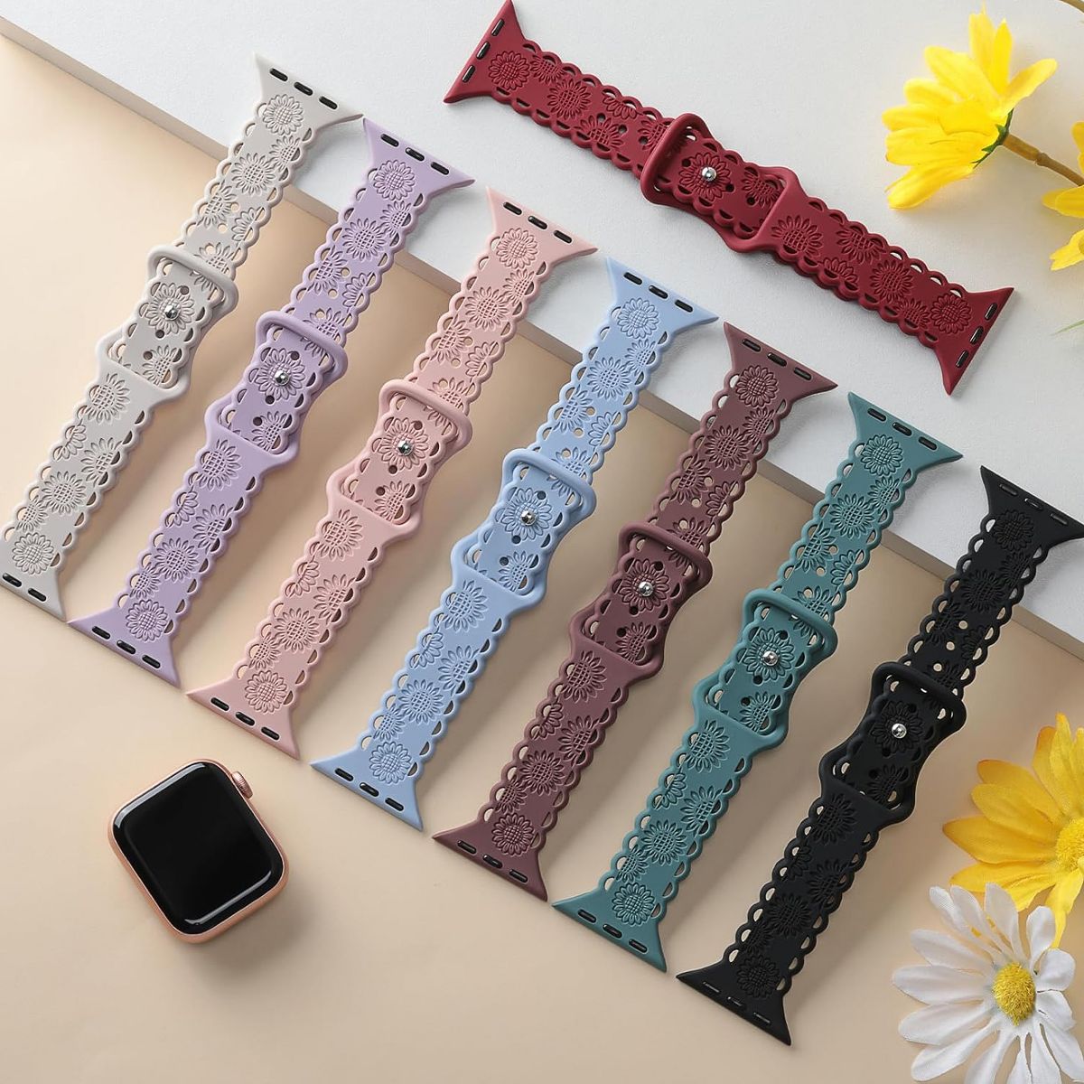 This Apple Watch Band blends natural charm and delicate craftsmanship, featuring a sunflower-engraved design, intricate lace hollow-out details, and multi-size compatibility—perfect for elevating the style of iWatch Series 9, 8, 6, 5, 4, 3, 2, 1, and Ultra models. Crafted with a focus on aesthetic appeal and durability, the band’s star feature is its sunflower engraving: precision-carved sunflower motifs add a touch of nature-inspired warmth, turning a functional strap into a decorative accessory that stands out from plain alternatives. The engravings are crisp, fade-resistant, and retain their detail even with daily wear, making the band a long-lasting way to showcase personal style.