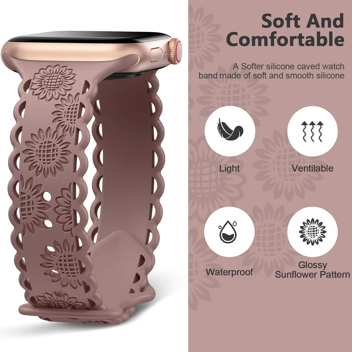 This Apple Watch Band blends natural charm and delicate craftsmanship, featuring a sunflower-engraved design, intricate lace hollow-out details, and multi-size compatibility—perfect for elevating the style of iWatch Series 9, 8, 6, 5, 4, 3, 2, 1, and Ultra models. Crafted with a focus on aesthetic appeal and durability, the band’s star feature is its sunflower engraving: precision-carved sunflower motifs add a touch of nature-inspired warmth, turning a functional strap into a decorative accessory that stands out from plain alternatives. The engravings are crisp, fade-resistant, and retain their detail even with daily wear, making the band a long-lasting way to showcase personal style.