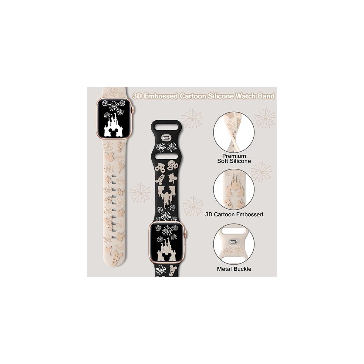 This Cartoon Embossed Band is a playful, eye-catching accessory designed to add personality to your Apple Watch, while delivering broad compatibility and everyday comfort for users of all styles. Crafted with a focus on unique design, the band features 3D cartoon embossing: vivid, raised cartoon motifs cover the strap, creating a tactile, lively look that stands out from plain bands—perfect for anyone who wants to infuse their smartwatch with fun, youthful energy, whether for daily wear, casual outings, or family gatherings. Made from high-quality, flexible material, the band balances softness and sturdiness: it feels lightweight and smooth on the wrist, conforming to your shape for all-day comfort, while the embossed patterns are resistant to fading, peeling, or wear—even after repeated use, workouts, or exposure to sweat. A key strength is its wide size and model compatibility: it’s available in 7 popular sizes, fitting nearly every Apple Watch case size—from compact 38mm models to the larger 49mm Apple Watch Ultra. It also works seamlessly with Apple Watch Series 10, 9, 8, 7, 6, 5, 4, 3, 2, 1, and Ultra, letting you switch the band between old and new devices without needing separate accessories. The band is equipped with a secure, easy-to-adjust closure: it locks firmly in place during daily activities—whether you’re typing, walking, or light workouts—preventing slipping, while still being simple to take on and off. With a range of cartoon themes to choose from, this embossed band turns your Apple Watch into a personalized style statement, blending fun, functionality, and versatility for users of all ages.