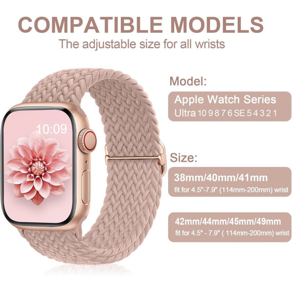 Compatible Models & Size: Sport Loop Nylon Braided Band with adjustable stainless steel metal buckle for Apple Watch 38mm/40mm 42mm/44mm 41mm/45mm/ 49mm (Series 10)42mm/46mm; Mazoft Band for iWatch Ultra 2&1 Series 10 & Series 9 & SE & Series 8, Series 7, Series SE, Series 6, Series 5, Series 4, Series 3