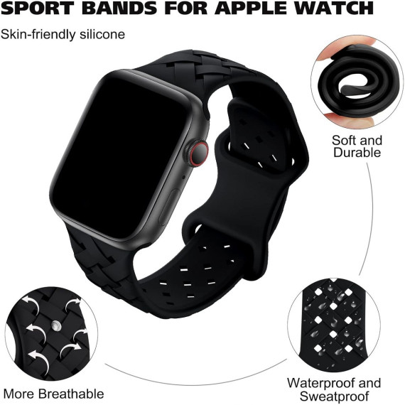 HTUTWOO Braided Weave Bands, Compatible with Apple Watch 38/40/41mm, Silicone Sport Strap for iWatch Series 10 9 8 7 6 5 4 3 2 1 Ultra SE, Black