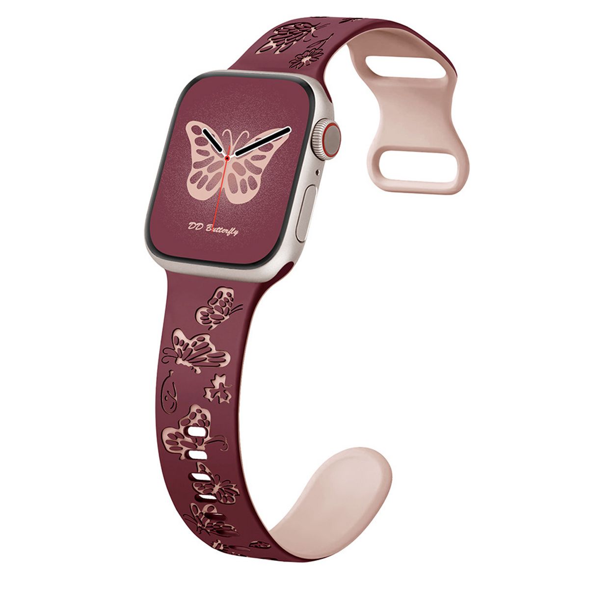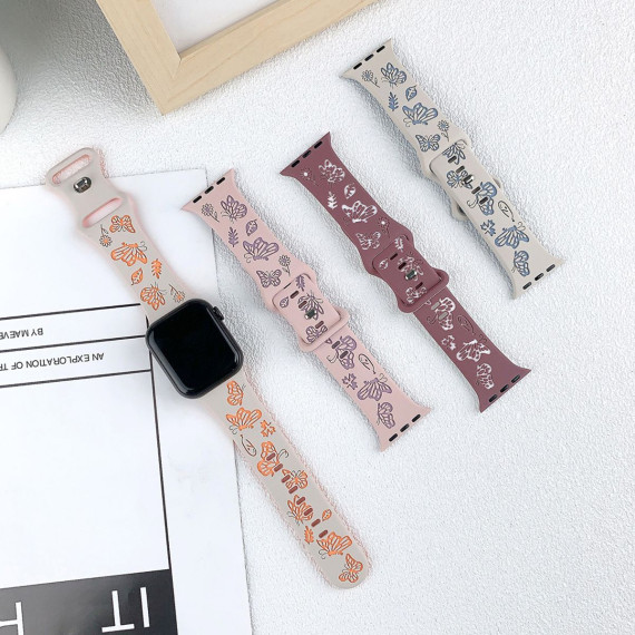 This Butterfly Engraved Apple Watch Band merges whimsical elegance with sporty functionality, featuring intricate butterfly engravings, a eye-catching two-tone silicone design, and a lightweight, flexible structure—tailored exclusively for Apple Watch models, including iWatch Series 10, 9, 8, 7, 6, 5, 4, 3, 2, 1, SE, and Ultra. Designed to elevate smartwatch customization, the strap stands out with its detailed butterfly engravings: precision-carved into the silicone surface, these motifs add subtle texture and a playful, nature-inspired charm, while the two-tone color scheme creates visual depth—avoiding monotony and making the band a statement accessory that complements diverse personal styles.