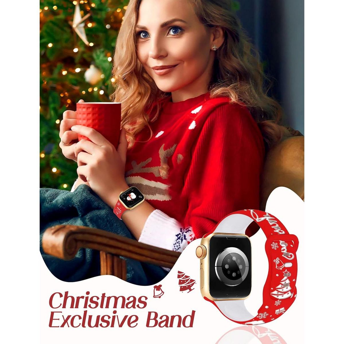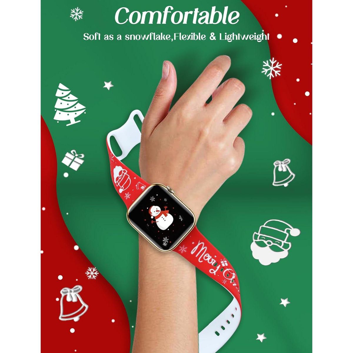 Newest Two-Tone Christmas Elements Design: This two-color silicone watch band uses advanced laser engraving technology to engrave delicate Santa Claus, Christmas trees, and other elements on high-quality two-tone silicone material. The exquisite Christmas elements design adds a Christmas touch to your wrist, making it a perfect accessory for Christmas. The two-color design--Red/White adds a splash of Christmas cheer to any outfit, making every second count towards your Yuletide celebrations