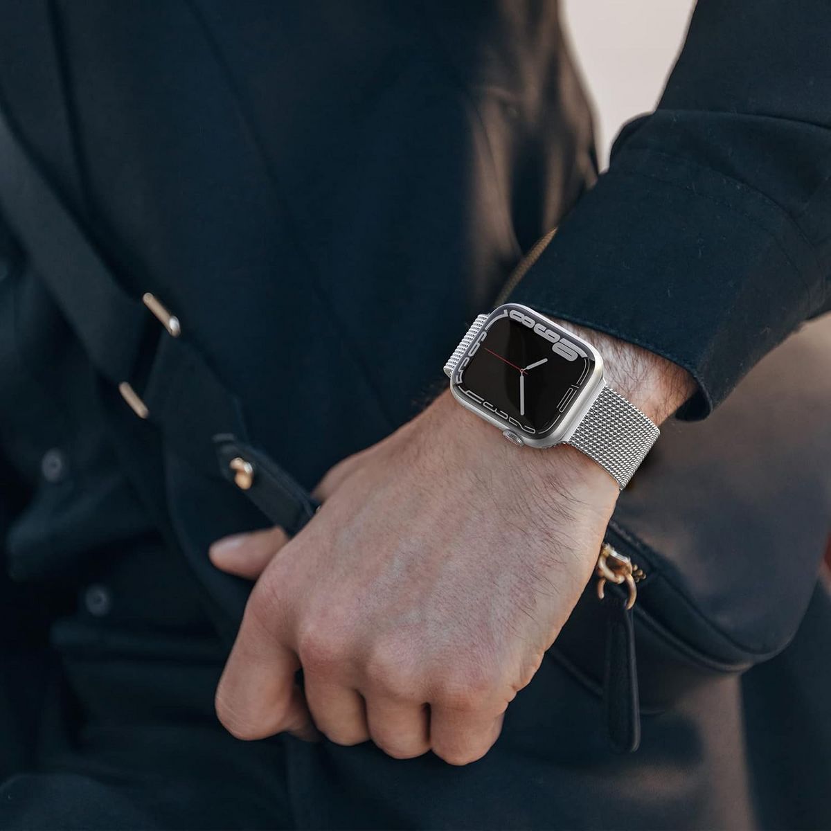 This replacement band, compatible with all Apple Watch Series models, is designed to cater to both women and men, merging style with practicality. Crafted from premium stainless steel, the mesh loop boasts a sleek, interconnected design that offers a comfortable, breathable fit—ideal for all-day wear, whether you’re at work, exercising, or out and about. The magnetic clasp is a standout feature, allowing for effortless adjustment to your wrist size without the need for tools; simply align the magnets for a secure, customized fit. With its versatile aesthetic, this band transitions seamlessly from casual daily activities to more formal occasions, making it a versatile addition to any smartwatch owner’s accessory collection.