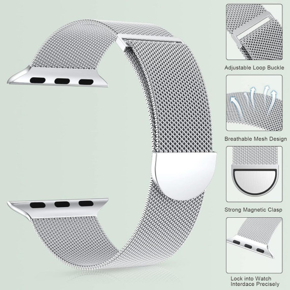 HTUTWOO Compatible with Apple Watch Band Series Women and Men, Stainless Steel Mesh Loop Magnetic Clasp Replacement for iWatch Bands ,Silver