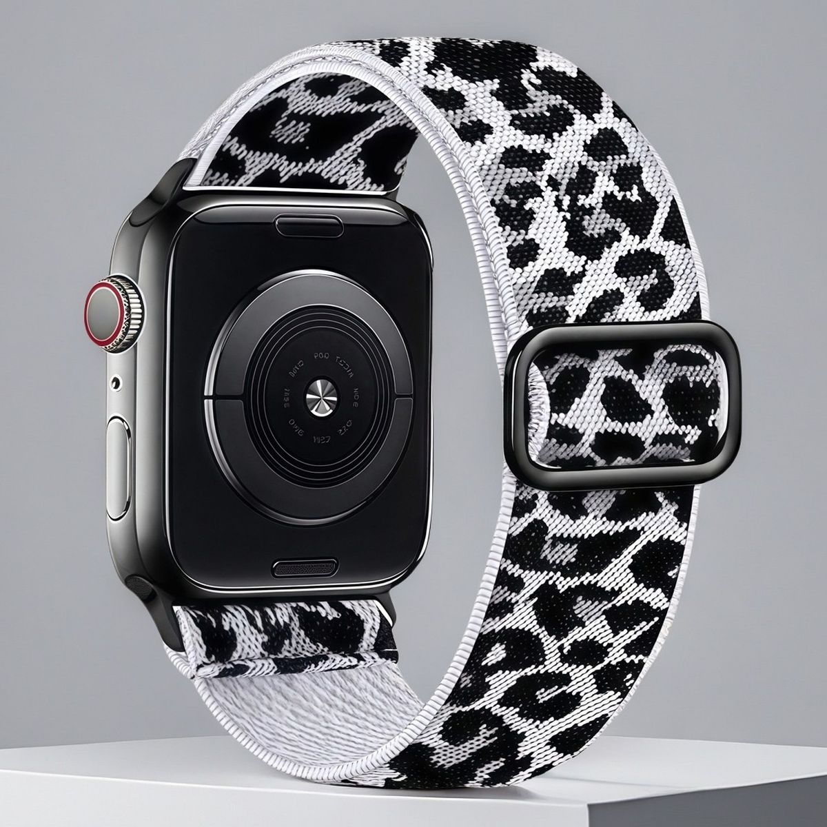 HTUTWOO Compatible with Apple Watch Nylon Stretchy Solo Loop Watch Band 38/40/41mm, Adjustable Strap for iWatch Series 1-10,SE, Ultra(Yellow Leopard)