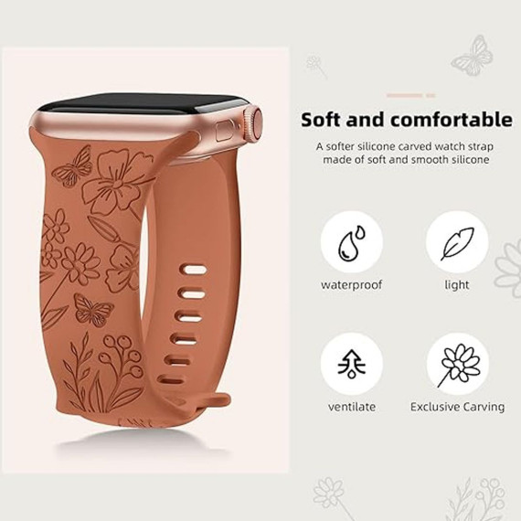 This Engraved Butterfly Apple Watch Band blends delicate style with everyday comfort, featuring intricate butterfly engravings on a soft silicone strap—designed to add a whimsical, feminine touch to your iWatch while ensuring all-day wearability. It’s fully compatible with iWatch Series 10, 9, 8, 7, 6, 5, 4, 3, 2, 1, SE, and Ultra models, making it a versatile replacement band for diverse watch generations. Crafted from high-quality, skin-friendly silicone, the strap balances durability with flexibility, making it suitable for both casual outings and active moments—elevating your iWatch from a functional device to a stylish accessory.