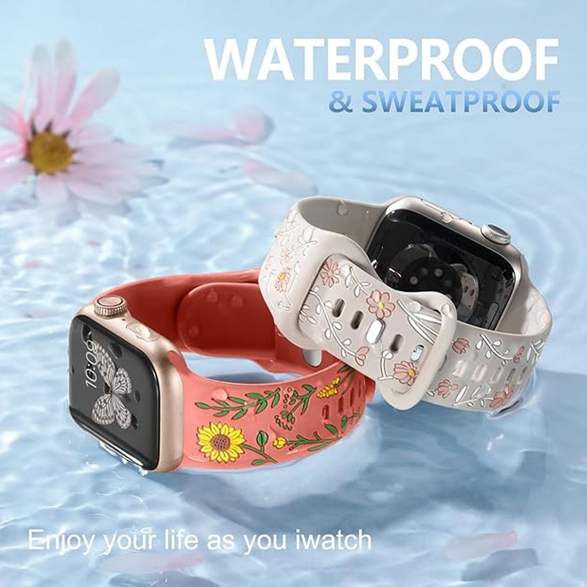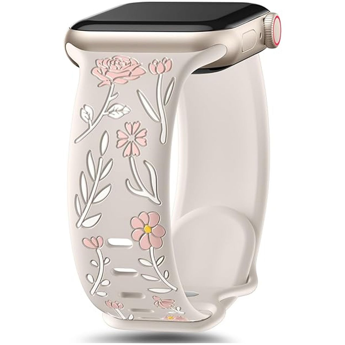 Apple Watch bands for women feature a multi-tone silicone inlay, combining stunning aesthetics with long-lasting durability Inspired by nature, the vibrant fade-resistant floral patterns and rich hues bring the outdoors to your wrist, blending elegance with natural charm. Designed to stand out, this pretty floral accessory elevates your style while connecting you to nature—perfect for turning heads and earning compliments wherever you go