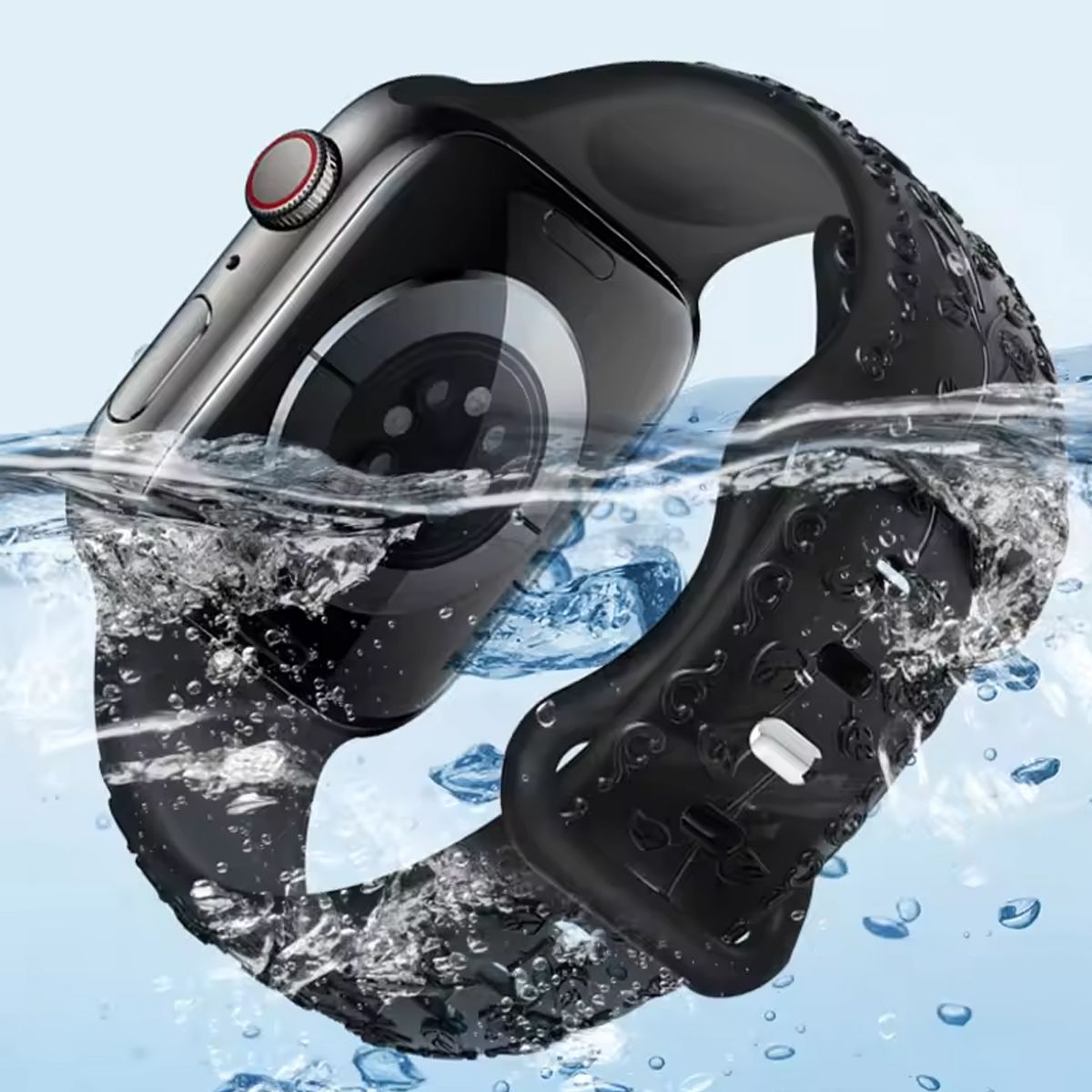 HTUTWOO Flower Engraved Apple Watch Band, Embossed Raised Rose Silicone Strap 38/40/41mm for iWatch Series 11 10 9 8 7 6 5 4 3 2 1 SE Ultra (Black)