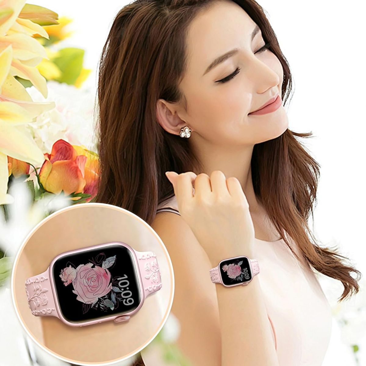 There are super lifelike and delicate embossed roses on the whole band!! When wearing this apple watch band, you will feel the vitality of every little rose. They seem to be jumping lightly on the apple watch bands for women, slowly wrapping around and rising. Adorned with picturesque lace on both sides, it adds a romantic and mysterious atmosphere.