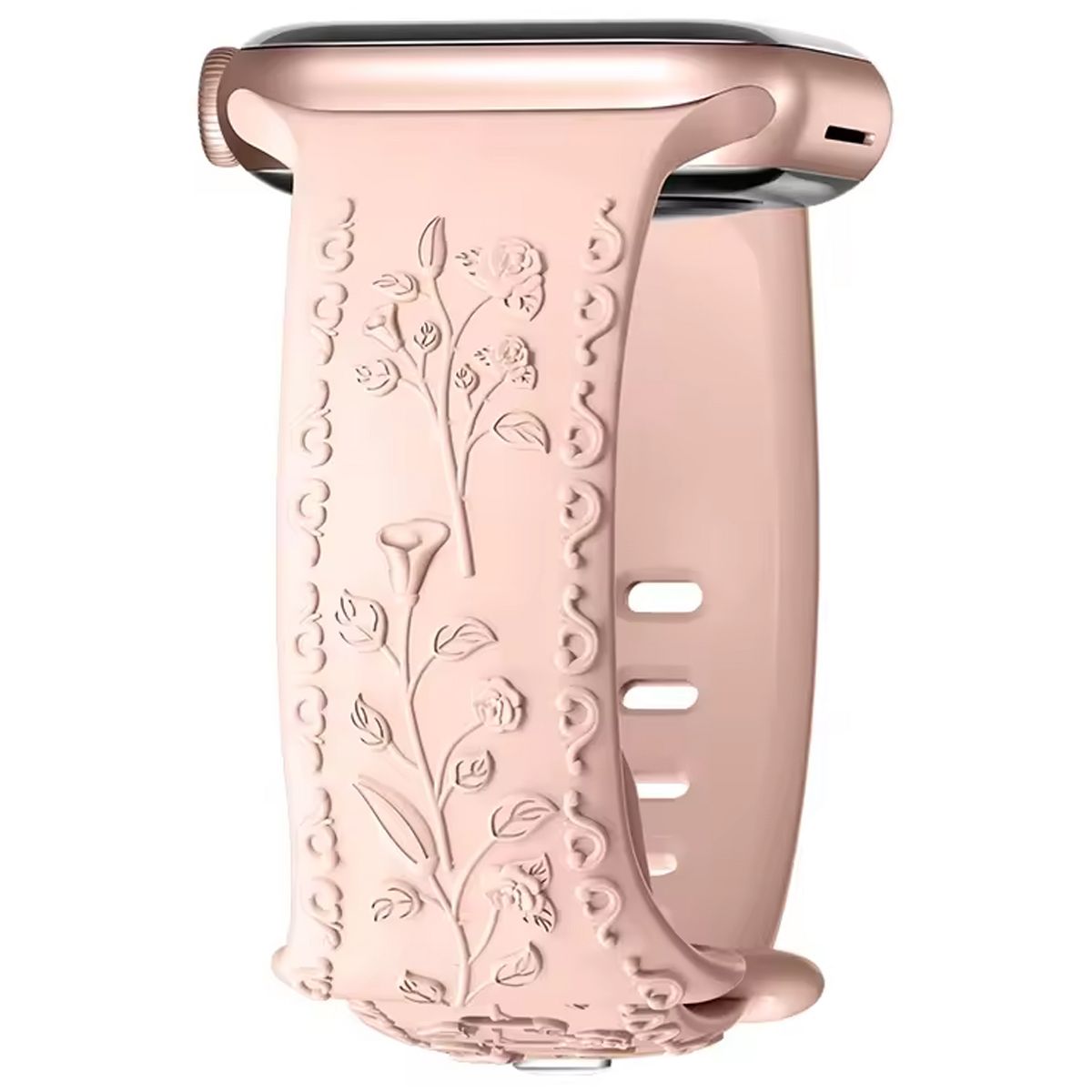 HTUTWOO Flower Engraved Apple Watch Band, Embossed Raised Rose Silicone Strap 38/40/41mm for iWatch Series 11 10 9 8 7 6 5 4 3 2 1 SE Ultra (Black)
