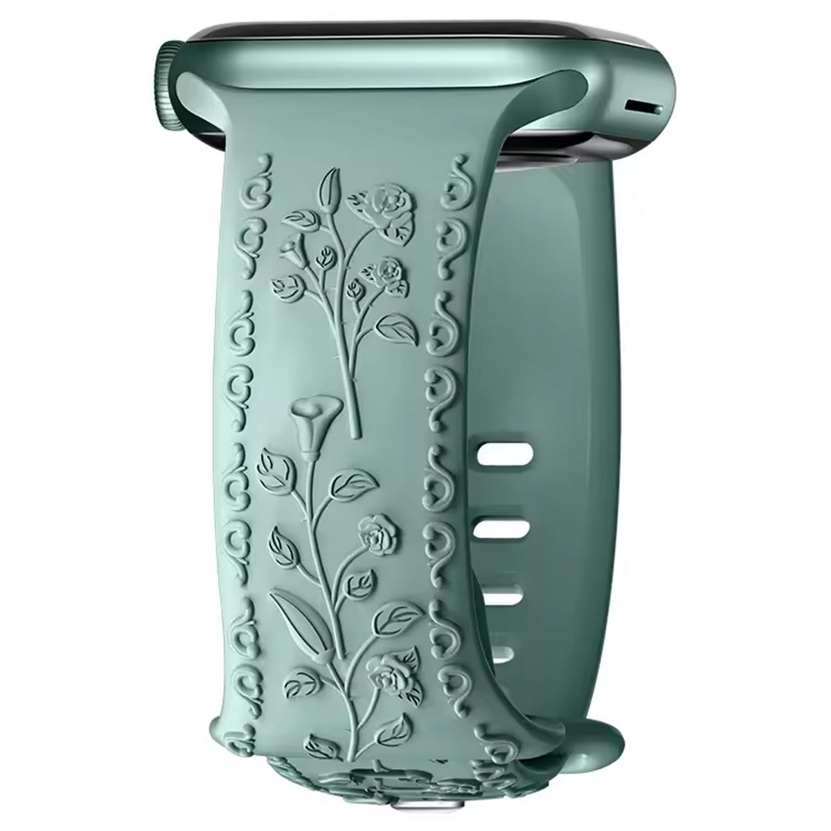 HTUTWOO Flower Engraved Apple Watch Band, Embossed Raised Rose Silicone Strap 38/40/41mm for iWatch Series 11 10 9 8 7 6 5 4 3 2 1 SE Ultra (Black)