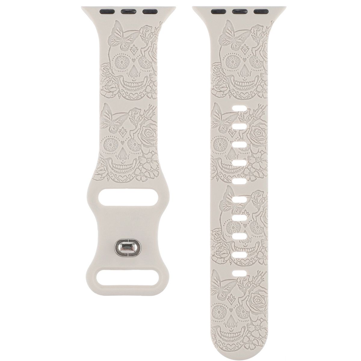 HTUTWOO Halloween Apple Watch Band, Skull Engraved Design Silicone Strap 38/40/41mm, for iWatch Series 10 9 8 7 6 5 4 3 2 1 SE (Pink)
