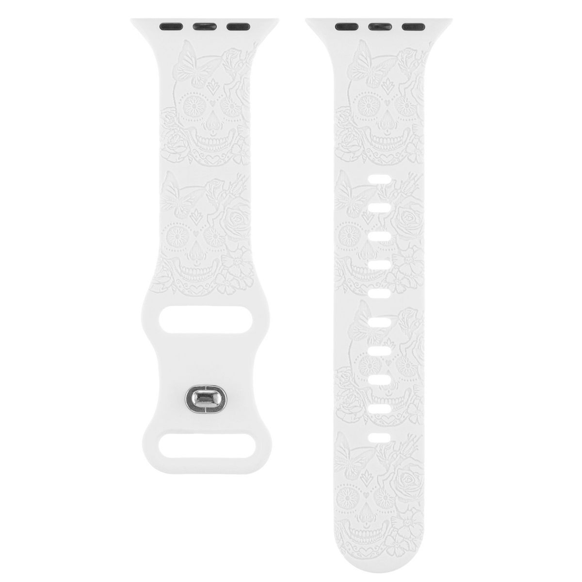 This Halloween Apple Watch Band blends spooky festive charm with everyday comfort, featuring a detailed skull engraved design and soft silicone material fully compatible with Apple Watch Series 10, 9, 8, 7, 6, 5, 4, 3, 2, 1, and SE models. Crafted from high-quality, skin-friendly silicone, the strap delivers a lightweight, flexible fit that conforms to wrist shapes, making it perfect for all-day wear during Halloween parties, trick-or-treating outings, or adding a seasonal twist to daily outfits.