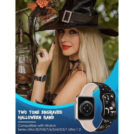 This Spooky Halloween iWacth band features the newest Two-Tone design, blending unique festive elements with exquisite design, more vivid, more three-dimensional, and more beautiful, and for a striking visual effect. Making your Watch radiate mysterious charm this Halloween.