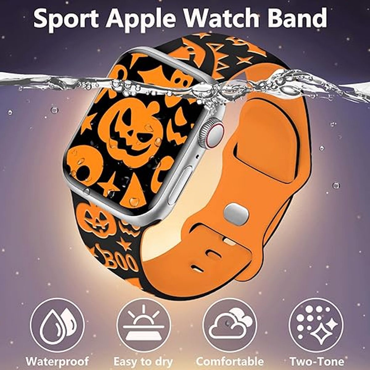 HTUTWOO Halloween Two-Tone Engraved iWatch Bands, Holiday Pumpkin Bands 38/40/41mm for iWatch Series 11 10 9 8 7 6 5 4 Ultra SE (Orange)