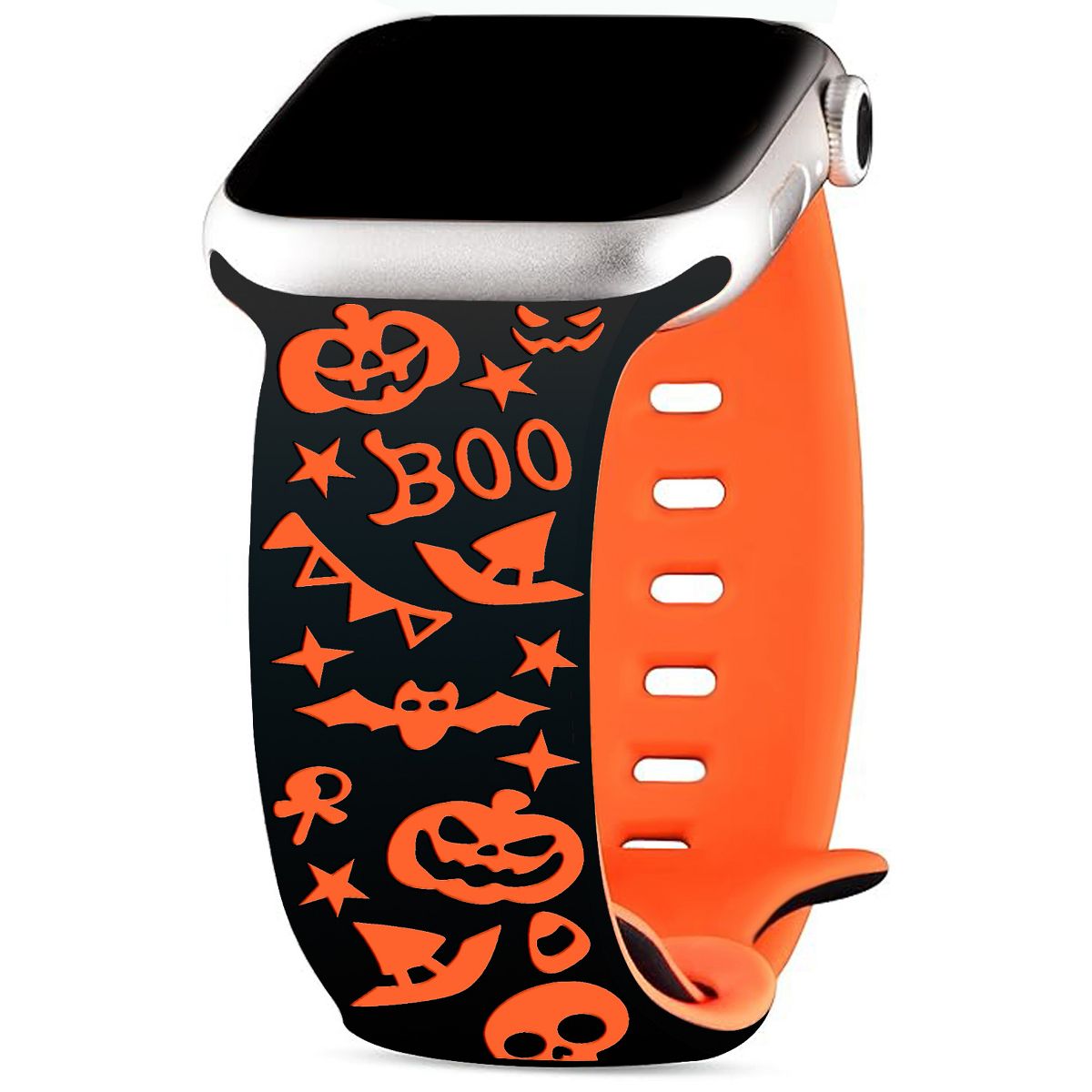 This Halloween Two-Tone Engraved iWatch Band is a festive, eye-catching accessory that infuses your Apple Watch with spooky-sweet holiday charm—perfect for celebrating Halloween or adding a playful seasonal touch to daily wear. Tailored for iWatch cases, it’s fully compatible with a wide range of models: iWatch Series 11, 10, 9, 8, 7, 6, 5, 4, Ultra, and SE, ensuring a seamless fit for most Apple Watch users.