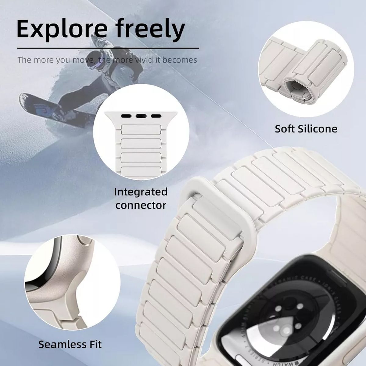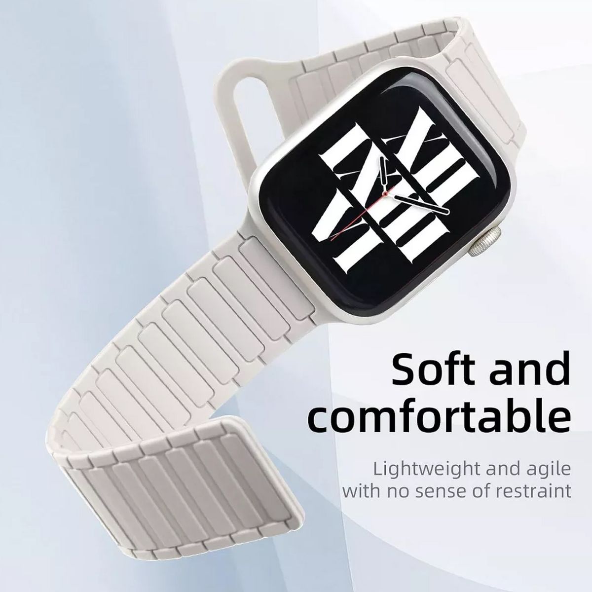 Compatibility: Magnetic silicone band designed for seamless compatibility with Apple Watch Ultra 2, Ultra, Series 10, 9, 8, 7, 6, 5, 4, 3, 2, 1, and SE models in sizes 49mm, 46mm, 45mm, 44mm, 42mm, 41mm,40mm and 38mm.