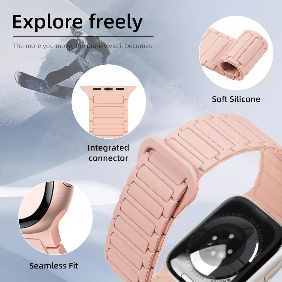 Compatibility: Magnetic silicone band designed for seamless compatibility with Apple Watch Ultra 2, Ultra, Series 10, 9, 8, 7, 6, 5, 4, 3, 2, 1, and SE models in sizes 49mm, 46mm, 45mm, 44mm, 42mm, 41mm,40mm and 38mm.