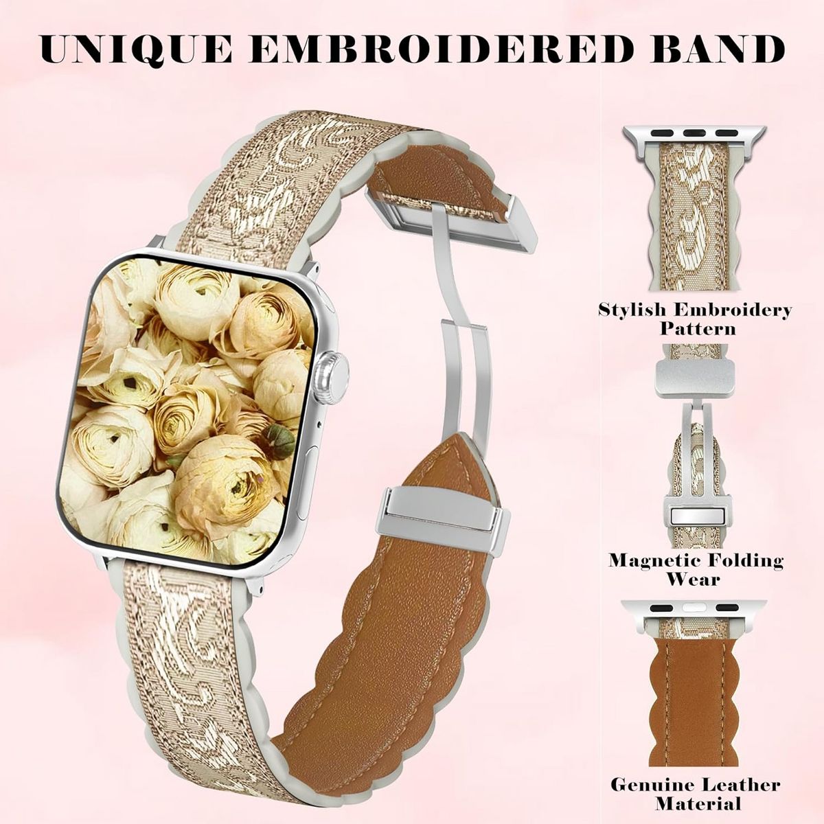 These Personality Embroidery Apple Watch Bands blend bold style with sports-ready functionality, designed to elevate your iWatch with unique embroidered patterns while delivering all-day comfort for active lifestyles. Crafted from durable, breathable sports fabric with intricate embroidery details—think floral motifs, geometric patterns, minimalist logos, or playful icons—each band adds a personalized touch to your smartwatch, standing out from generic straps. They offer universal compatibility with iWatch Series 11, 10, 9, 8, 7, 6, 5, 4, 3, 2, 1, SE, and Ultra models, making them a versatile upgrade for any generation of Apple Watch.