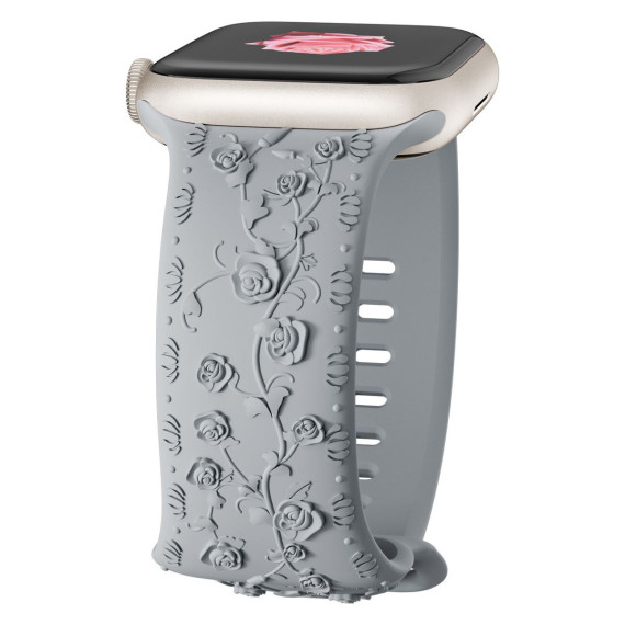 This Rose Engraved Apple Watch Band combines elegant floral design with sporty comfort, featuring intricate rose engravings, delicate rose floral patterns, and a soft sport silicone material—perfectly tailored for Apple Watch models, including iWatch Series 11, 10, 9, 8, 7, 6, 5, 4, 3, 2, 1, SE, and Ultra. Crafted to blend style and functionality, the strap redefines Apple Watch customization: the surface of the silicone band is adorned with precision-engraved rose motifs that add a subtle, sophisticated texture, while hand-painted or printed rose floral accents elevate its visual appeal—avoiding overly bold designs and instead offering a timeless, feminine touch that complements both casual and semi-formal outfits.
