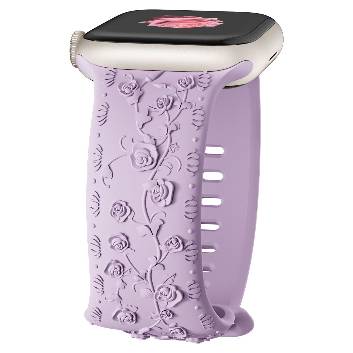 This Rose Engraved Apple Watch Band combines elegant floral design with sporty comfort, featuring intricate rose engravings, delicate rose floral patterns, and a soft sport silicone material—perfectly tailored for Apple Watch models, including iWatch Series 11, 10, 9, 8, 7, 6, 5, 4, 3, 2, 1, SE, and Ultra. Crafted to blend style and functionality, the strap redefines Apple Watch customization: the surface of the silicone band is adorned with precision-engraved rose motifs that add a subtle, sophisticated texture, while hand-painted or printed rose floral accents elevate its visual appeal—avoiding overly bold designs and instead offering a timeless, feminine touch that complements both casual and semi-formal outfits.