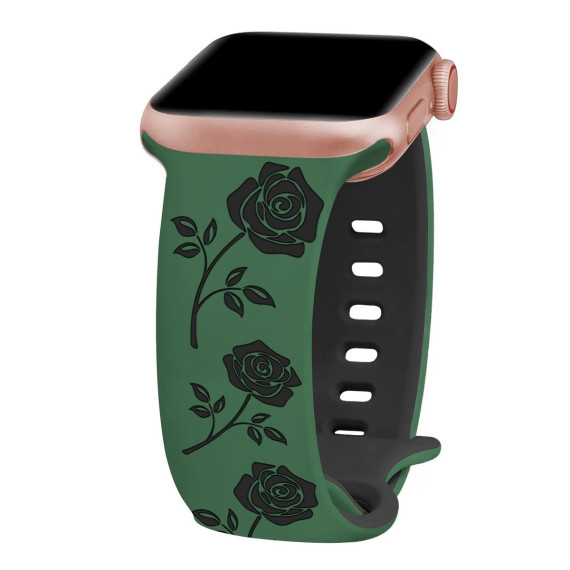This Rose Floral Engraved Apple Watch Band combines elegant design with everyday comfort, featuring intricate rose floral engravings, a soft two-tone silicone construction that fits Apple Watch Series 11, 10, 9, 8, 7, 6, 5, 4, 3, 2, 1, SE, and Ultra models. Unlike plain silicone straps that lack personality or rigid engraved bands that feel uncomfortable, this watch band solves two key pain points for Apple Watch users: it adds a feminine, decorative touch via delicate rose floral engravings while retaining the flexibility and breathability of silicone for all-day wear; and its two-tone color scheme complements both casual and semi-formal outfits, making it versatile for work, workouts, or weekend outings.