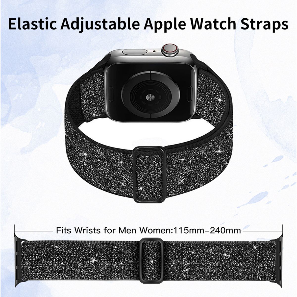 HTUTWOO Shiny Apple Watch Band, Nylon Stretchy Strap 38/40/41mm for iWatch Series 11 10 9 8 7 6 5 4 3 2 1 SE Ultra (Black)