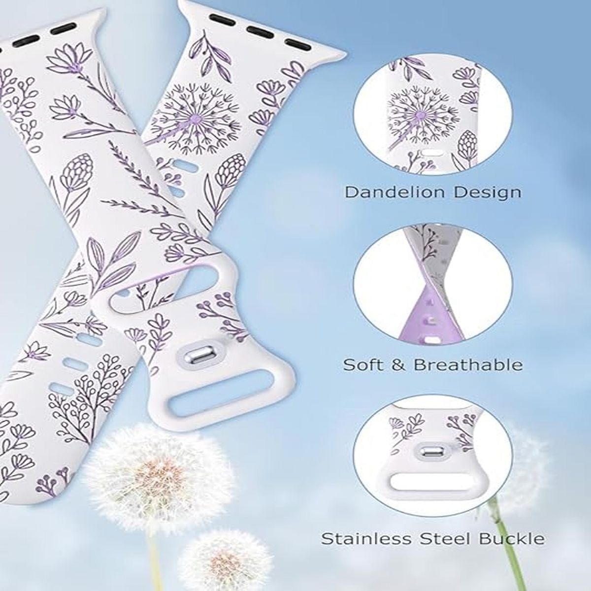HTUTWOO Smart Watch Bands for Apple Watch Strap 38mm 40mm 41mm, Dandelion Elastic Sports Wristband for iWatch Series, White + Purple
