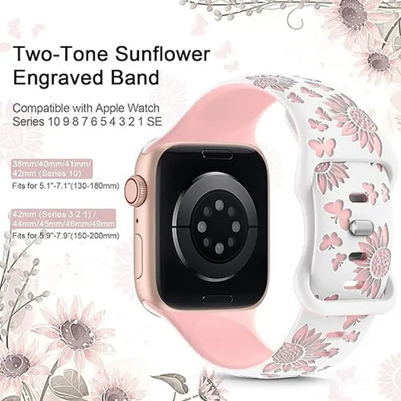 This Sunflowers Engraved Apple Watch Band reimagines tech accessories with nature-inspired charm, combining soft silicone comfort, precise sunflower engravings, and universal compatibility—crafting a standout sport strap for Apple Watch cases. Designed to infuse your daily wear with the warmth of sunflowers, it works seamlessly with an extensive range of iWatch models, including the latest Series 11, 10, 9, 8, 7, 6, 5, 4, 3, 2, 1, SE, and 41mm variants of the Ultra. Whether you’re a nature lover, a fan of playful yet elegant design, or simply seeking a break from generic watch straps, this sunflower-engraved option balances functionality with heartfelt style.