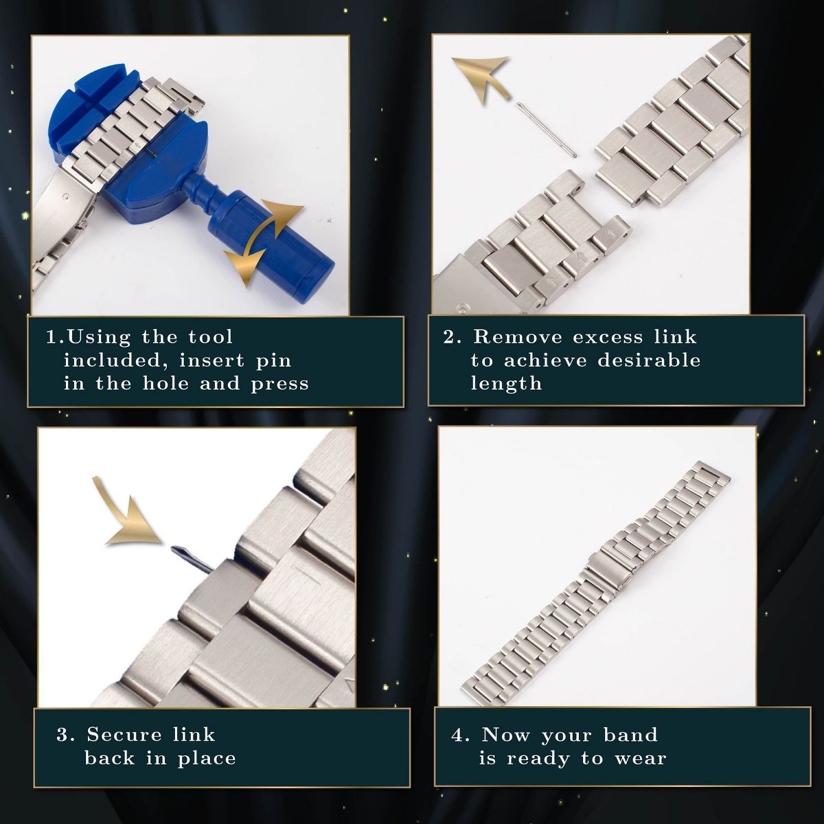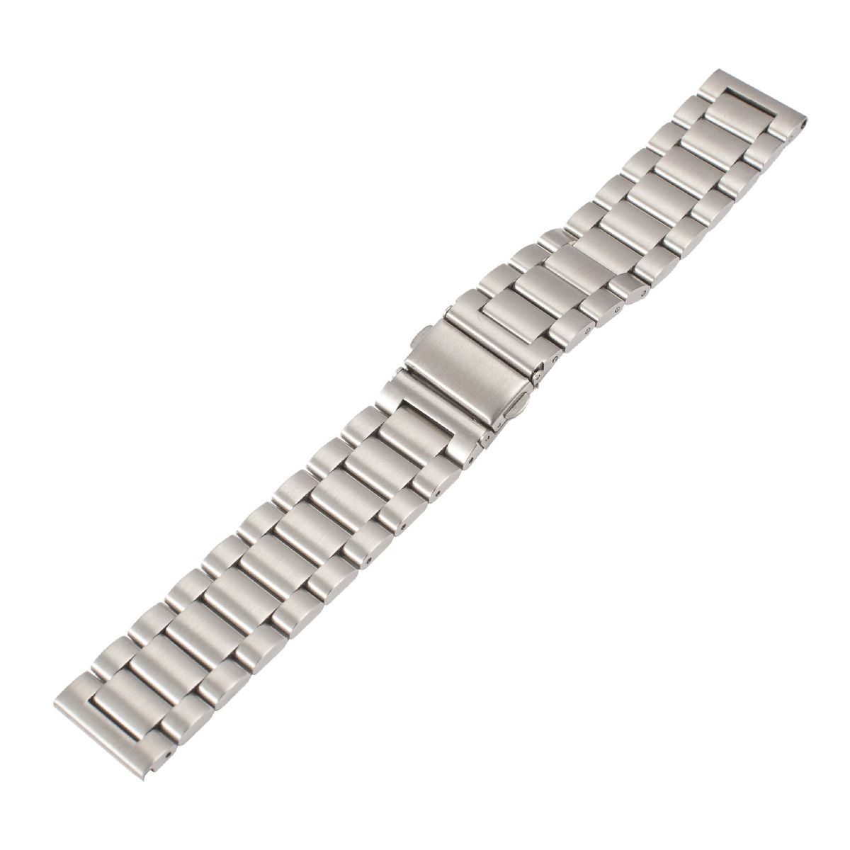 Keep your smartwatch looking new and fresh with sleek and classic strap. Sophisticated design is perfect for formal setting but versatile enough to emanate elegance in your everyday lifestyle. Swap bands in seconds as this requires very minimal effort to install or remove. With precise fitting and T-shaped streamline design, it fastens band onto your smartwatch steadily so you can move around freely without worries. Secure clasp is easy to use and can be removed with just one hand. Link removal tools included for self-adjusting strap size to fit you perfectly.