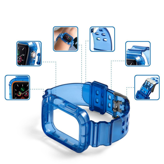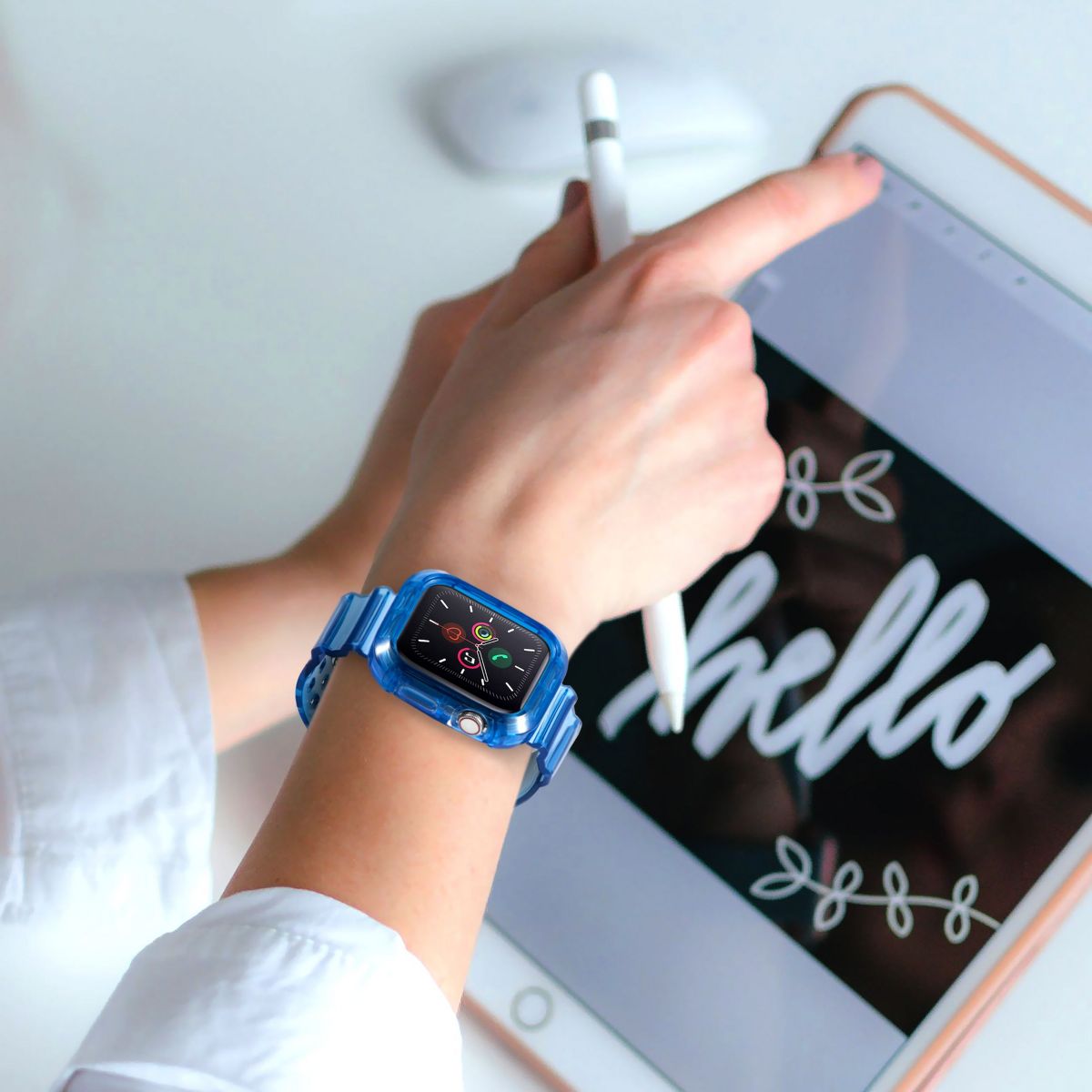 Insten Watch Band with Bumper Case For Apple Watch 44mm 42mm Series SE 6 5 4 3 2 1, Replacement Soft TPU Strap, Blue