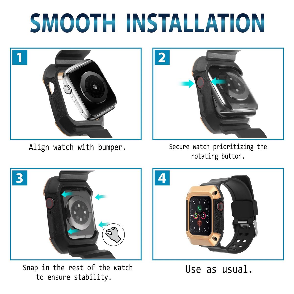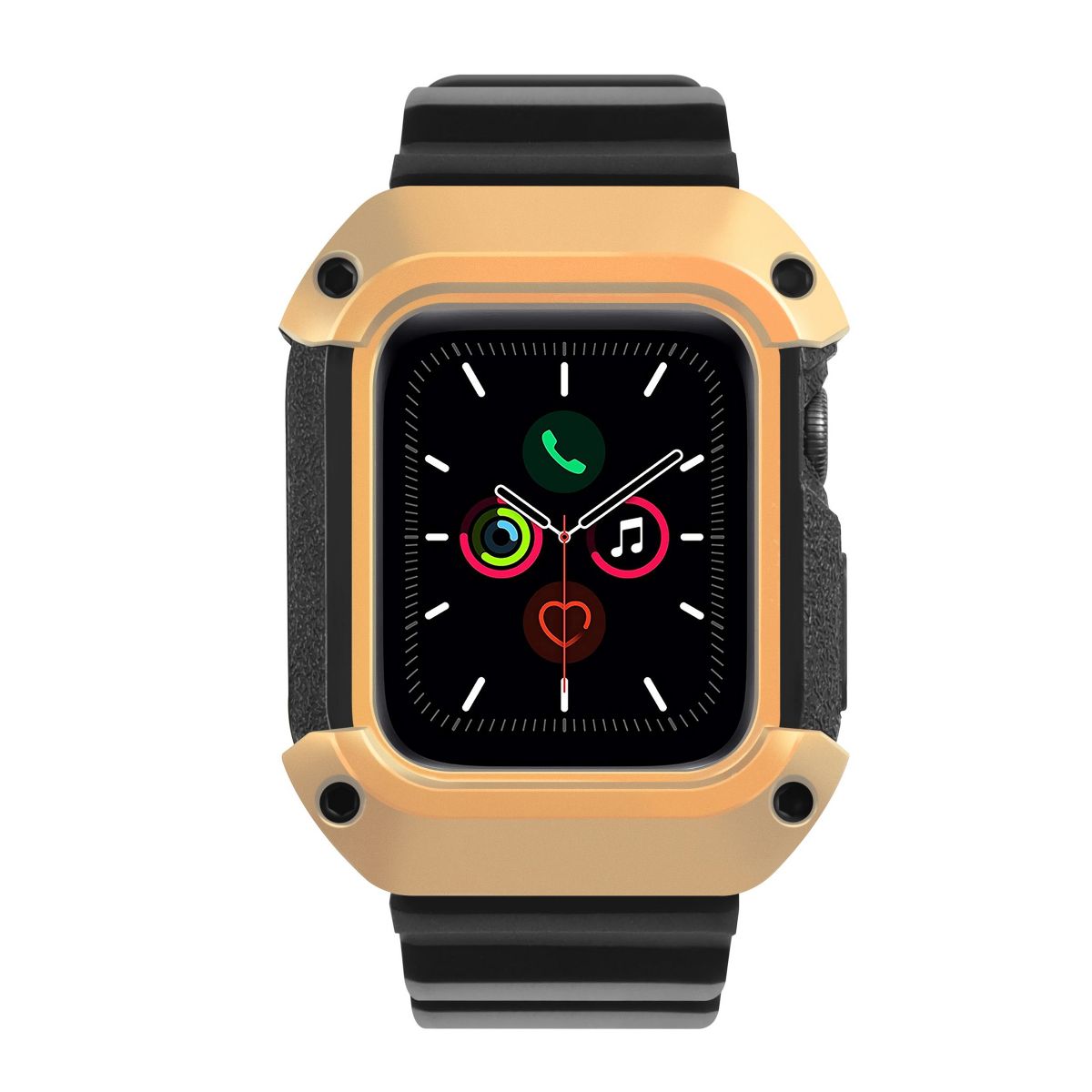 Insten Watch Band with Rugged Bumper Case For Apple Watch 44mm Series 6 SE 5 4, Replacement Strap, Black/Gold