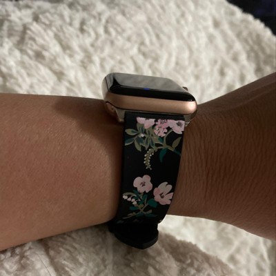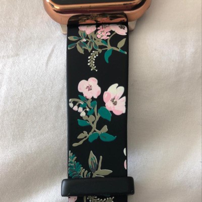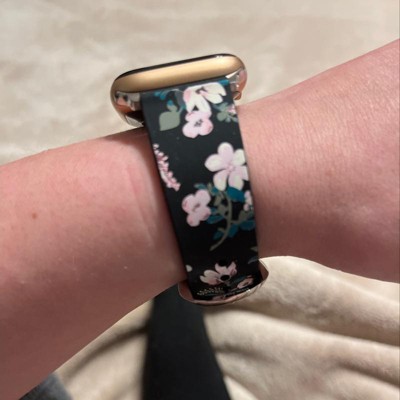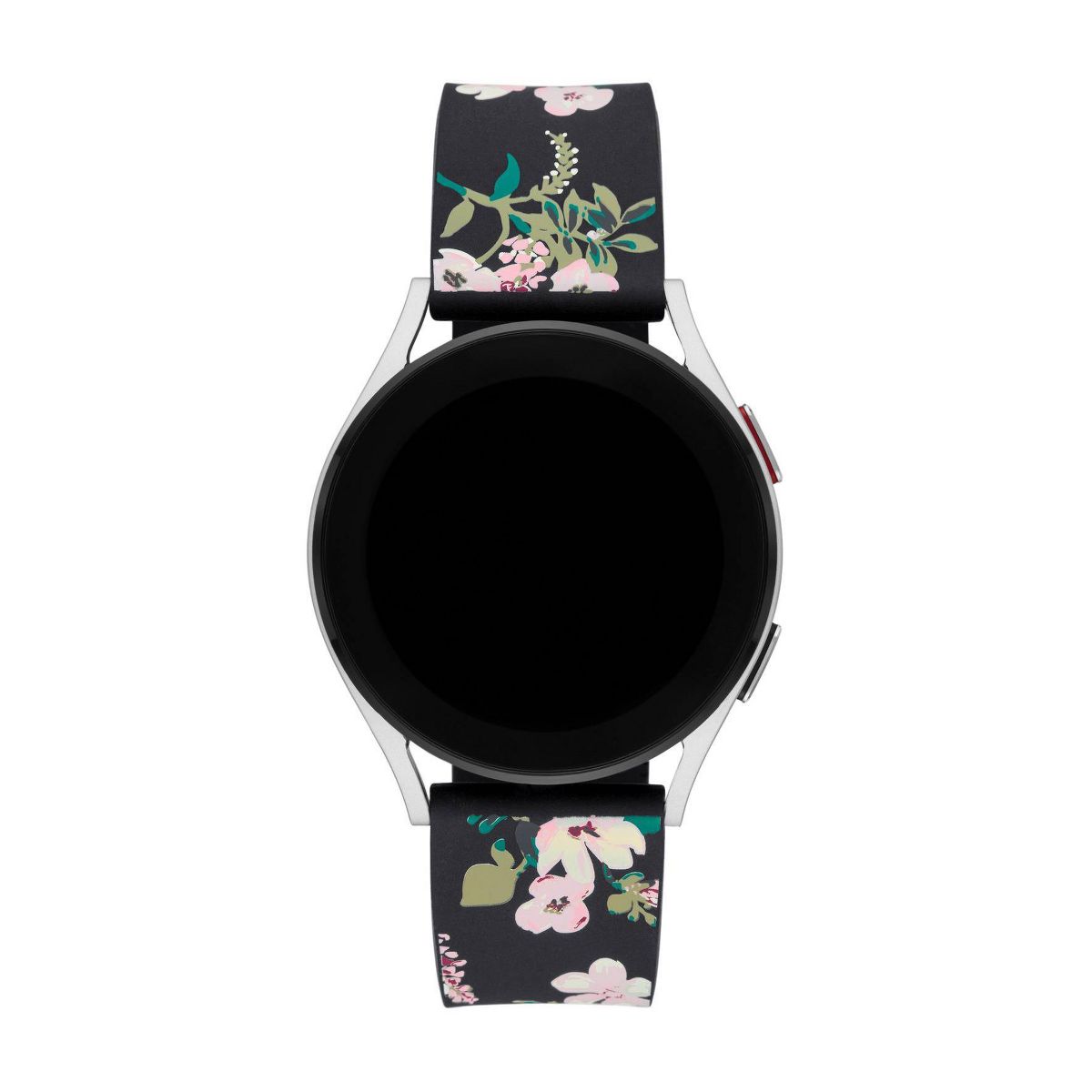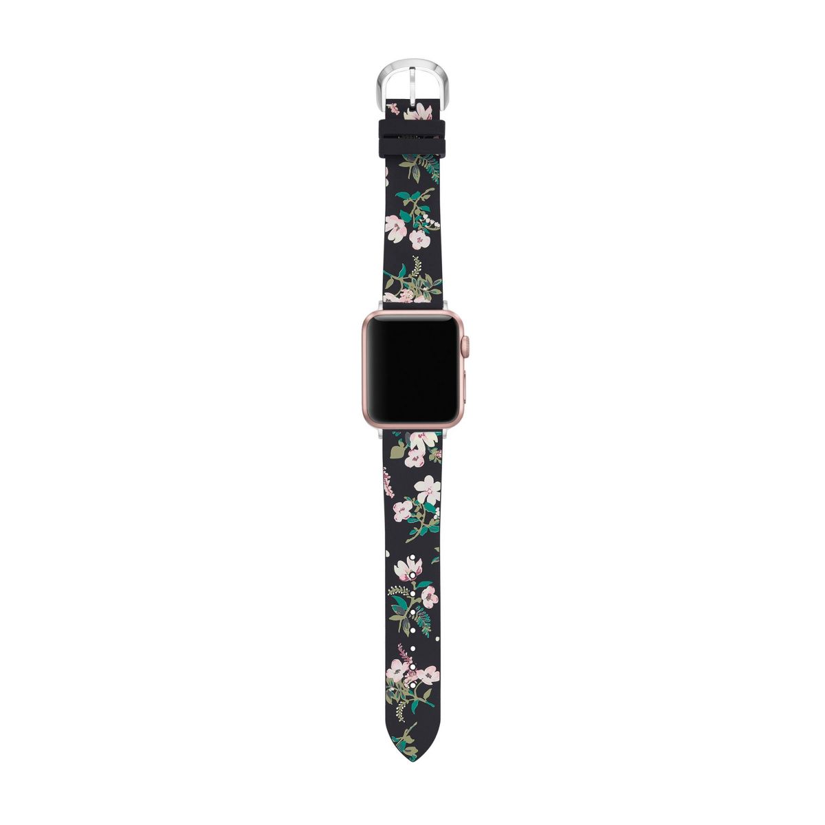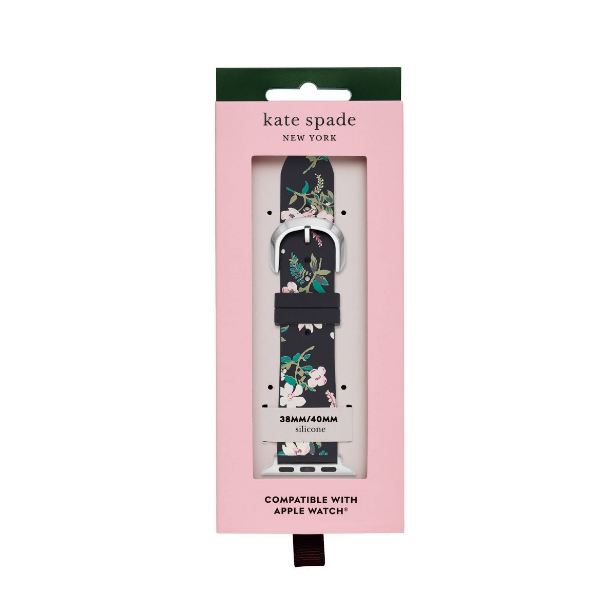Kate Spade New York's black floral print silicone band will add an extra special touch to your Apple Watch®. Detailed with a silver-tone buckle, it's made specifically for use with the Series 1-7 and SE model Apple Watch® and fits both 38mm, 40mm and 41mm styles. Apple Watch® is a trademark of Apple, Inc. Style # KSS0011