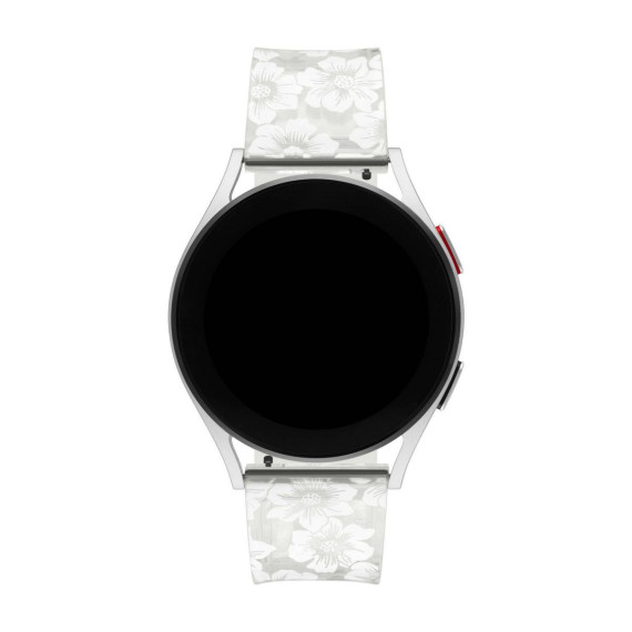 This Kate Spade New York HollyHock Floral and Clear Band for Apple Watch® features a cream floral print and silver-tone buckle. It is made specifically for use with the series one, two, three, four, five, six, seven and SE model Apple Watch® and fits both 38mm, 40mm and 41mm styles. You can never have too much of a good thing. case in point: flowers! Apple Watch® is a trademark of Apple Inc.