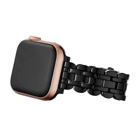 Kate Spade New York's black stainless steel scallop bracelet band will add an extra special touch to your Apple Watch®. Detailed with a black buckle and self-adjustable scalloped links, it's made specifically for use with the Series 1-7 and SE model Apple Watch®, and fits 38mm, 40mm and 41mm styles. Style #KSS0068