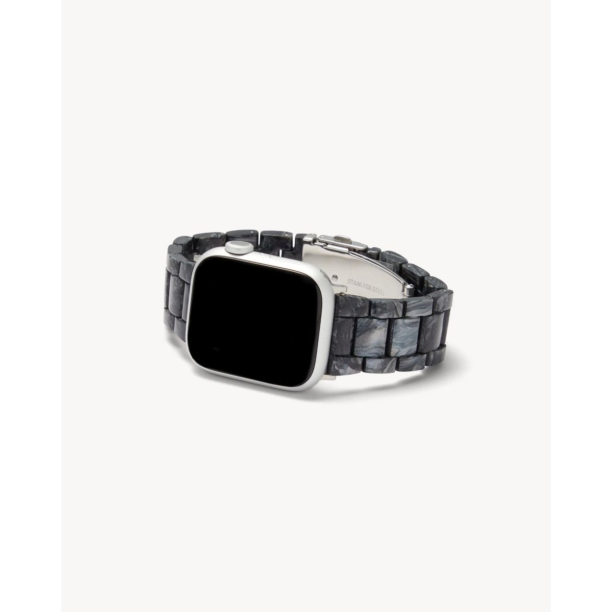 A classic oyster-style band, reimagined for the Apple watch in our fine Italian acetate. Deluxe edition includes a resizing kit and adaptable connector for a universal fit. Black Hardware Color