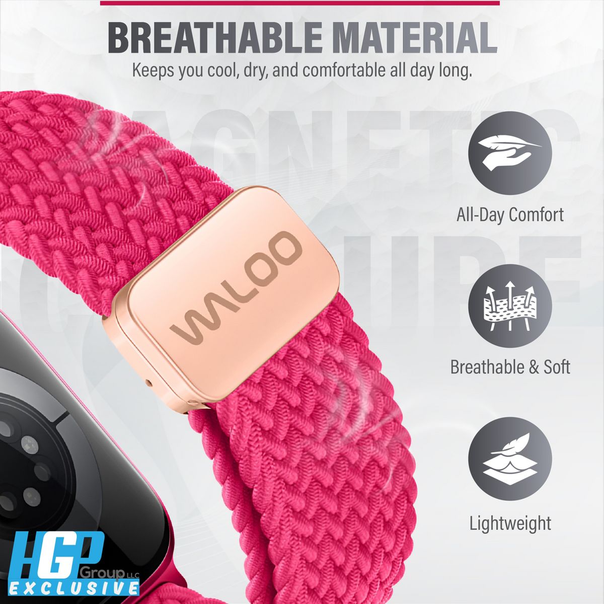 The Waloo Braided Nylon Magnetic Apple Watch Replacement Band combines premium craftsmanship with everyday functionality. Its soft, breathable weave feels gentle against the skin, while the adjustable magnetic closure ensures a secure, customized fit. Lightweight yet durable, this band is perfect for workouts, office wear, and casual outings, making it a versatile choice for any occasion.