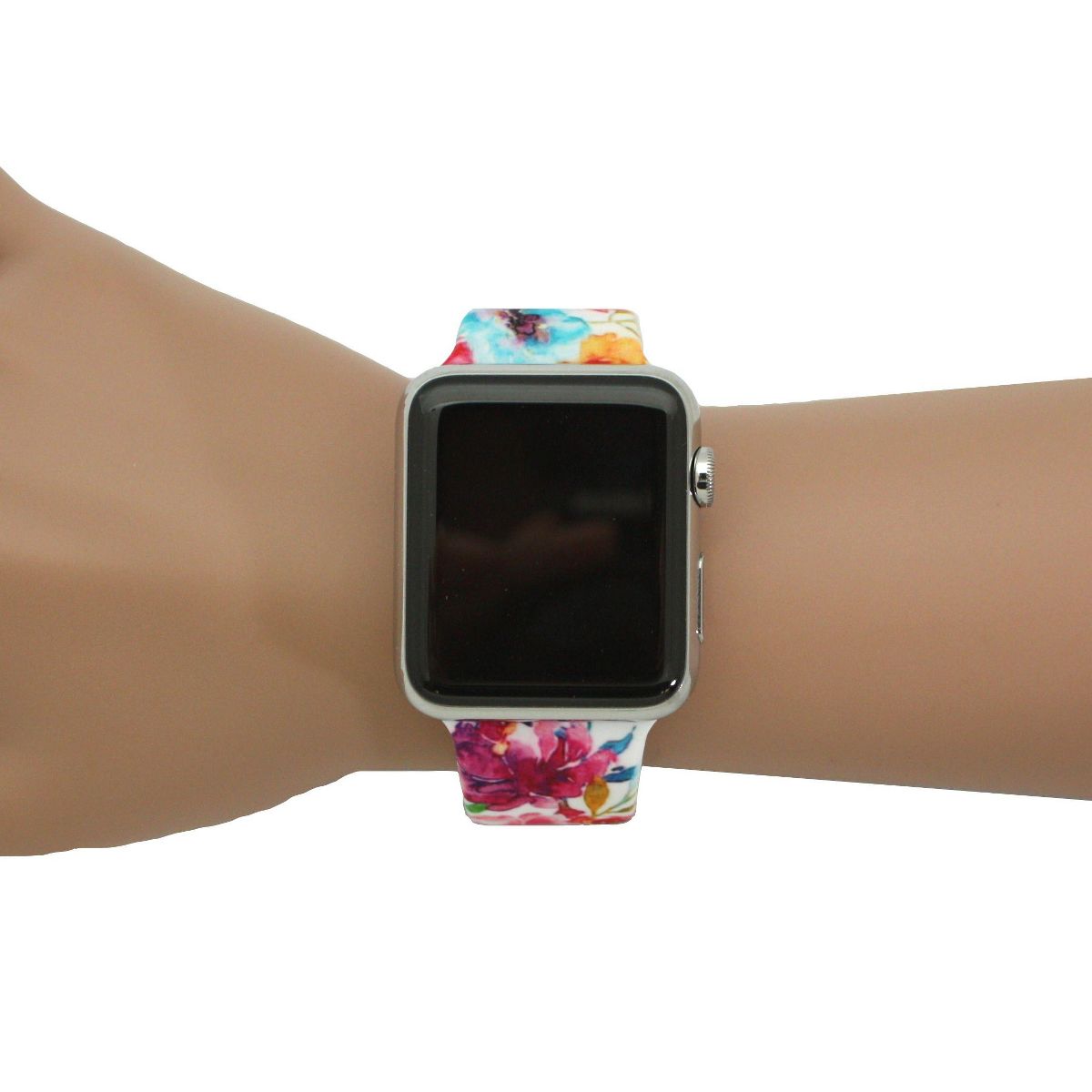 Multicolored Flowers Printed Silicone Apple Watch Band 38MM