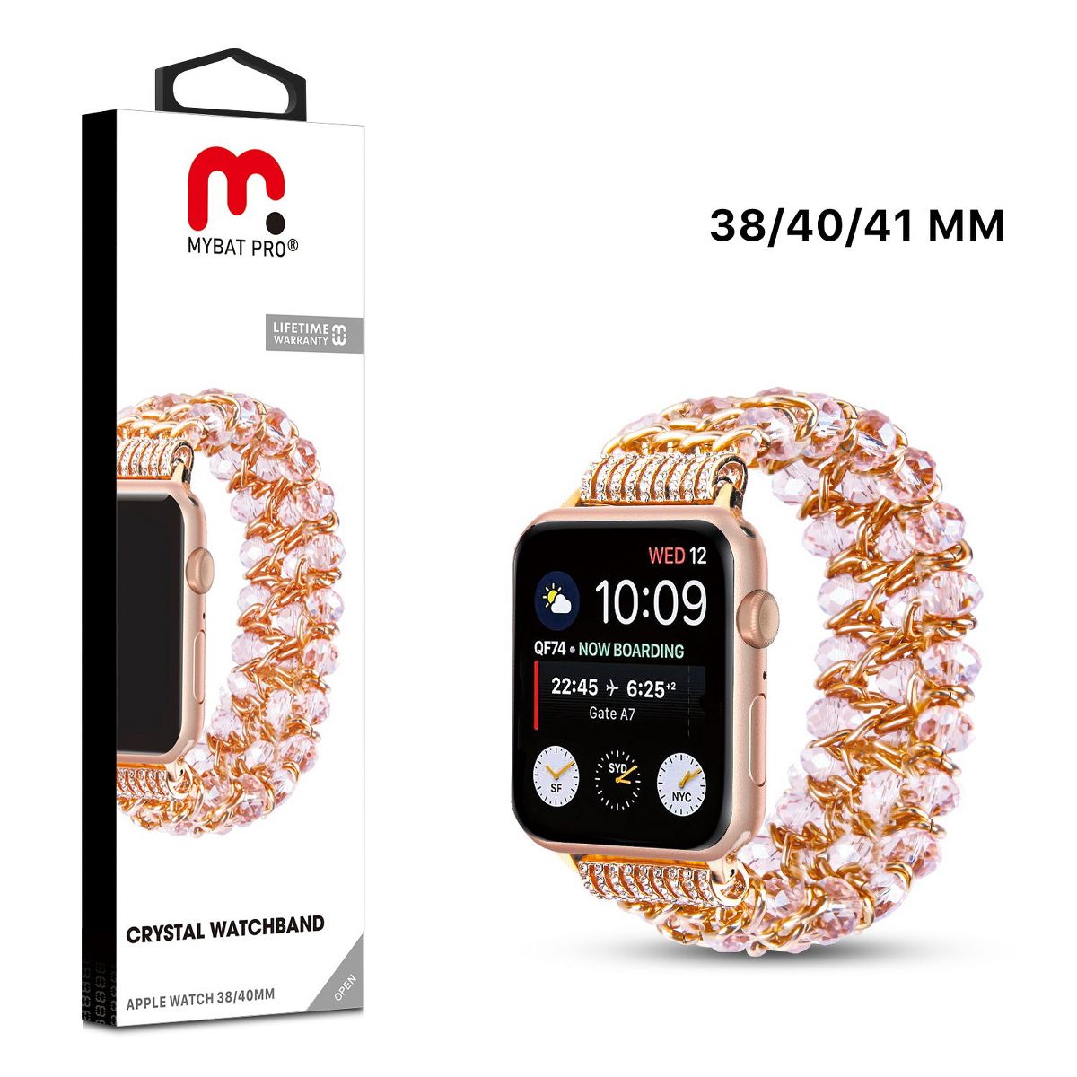 Turn your Apple Watch into a statement accessory with the MyBat Pro Crystal Watchband. Featuring shimmering crystal beads and rose-gold stainless-steel accents, this band adds an instant touch of glamour to any outfit.