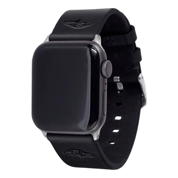 NFL Baltimore Ravens Apple Watch Compatible Leather Band 38/40/41mm - Black