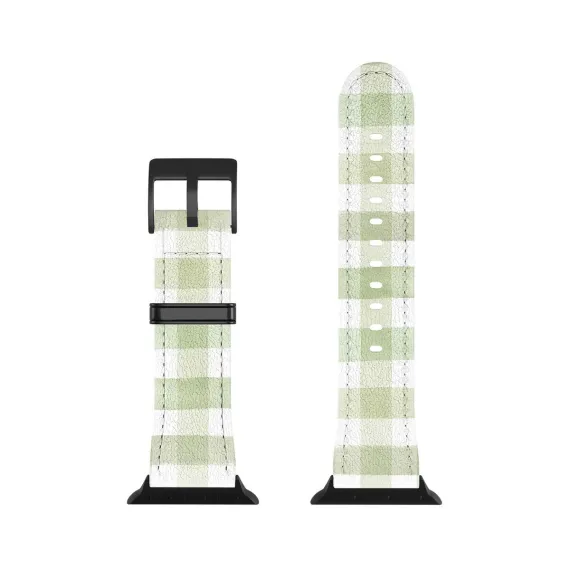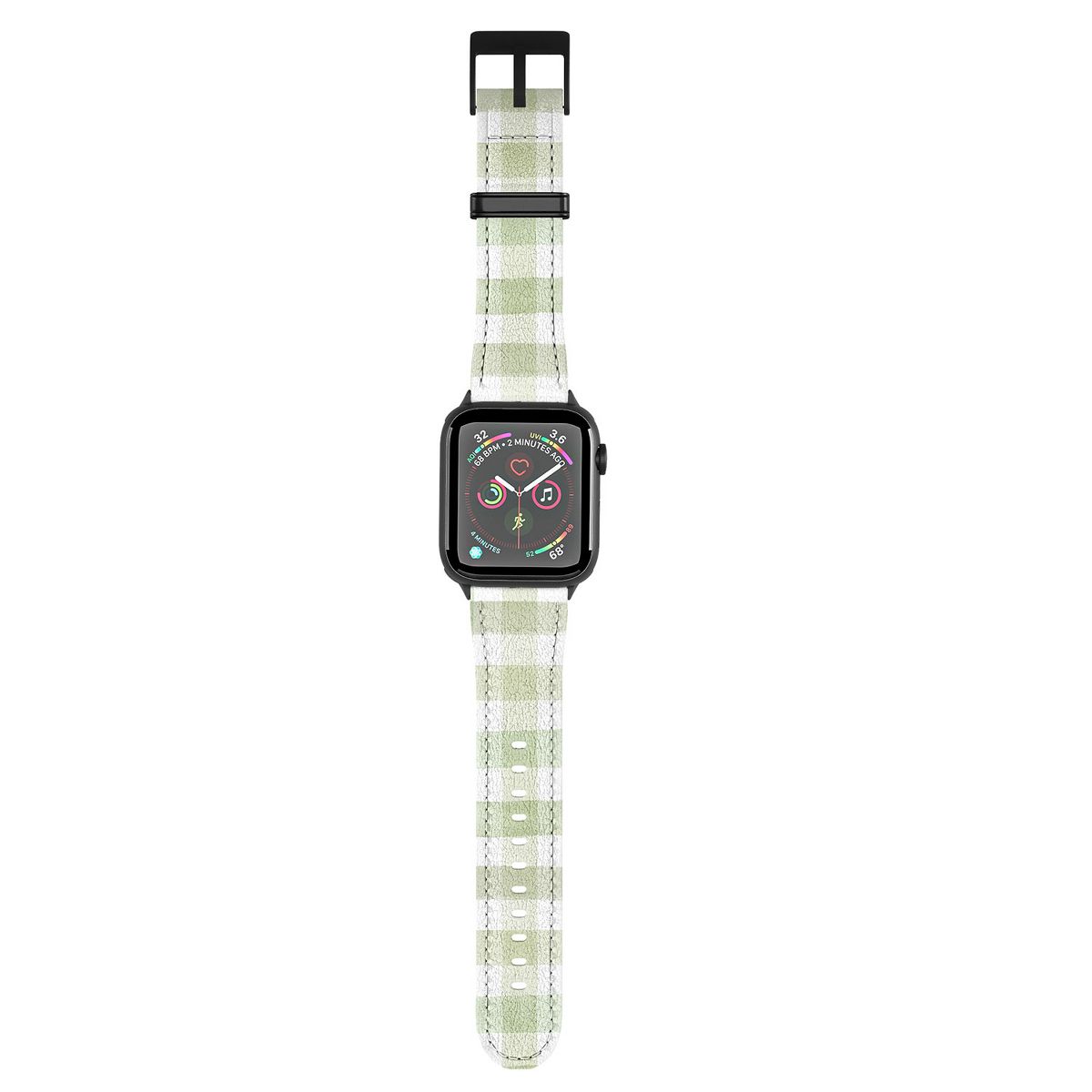 Ninola Design Watercolor Gingham Salad Green 42mm/44mm Black Apple Watch Band - Society6