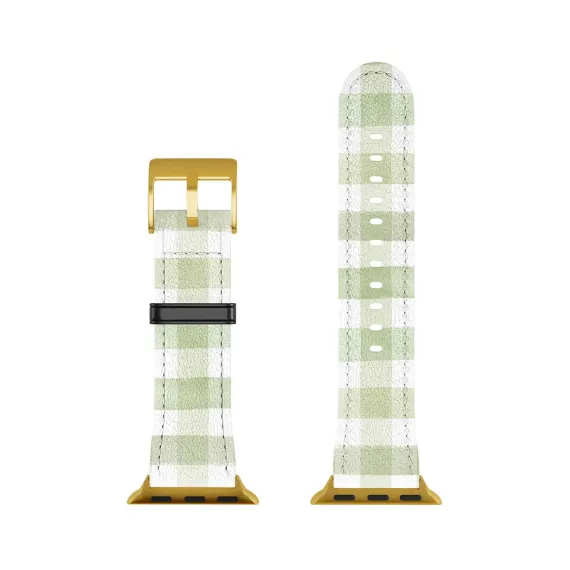 Ninola Design Watercolor Gingham Salad Green 42mm/44mm Gold Apple Watch Band - Society6